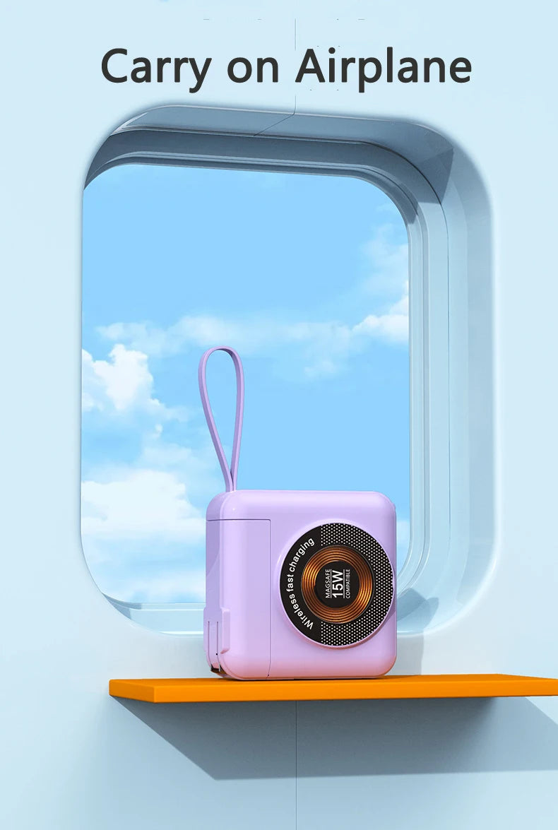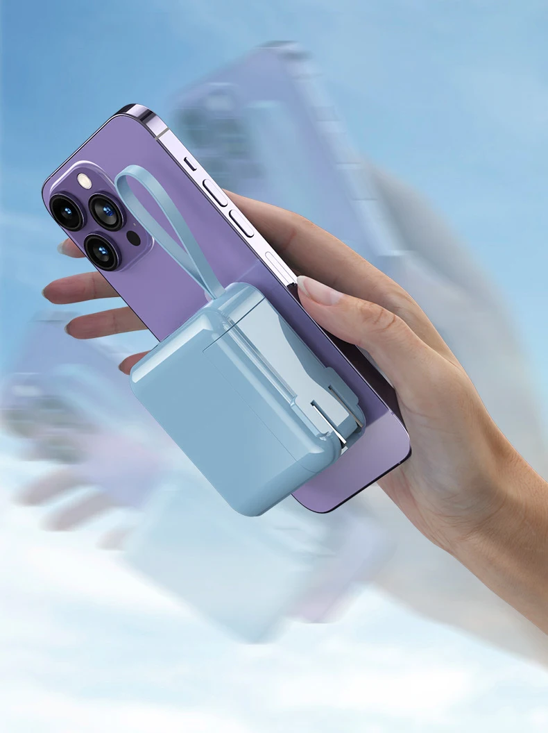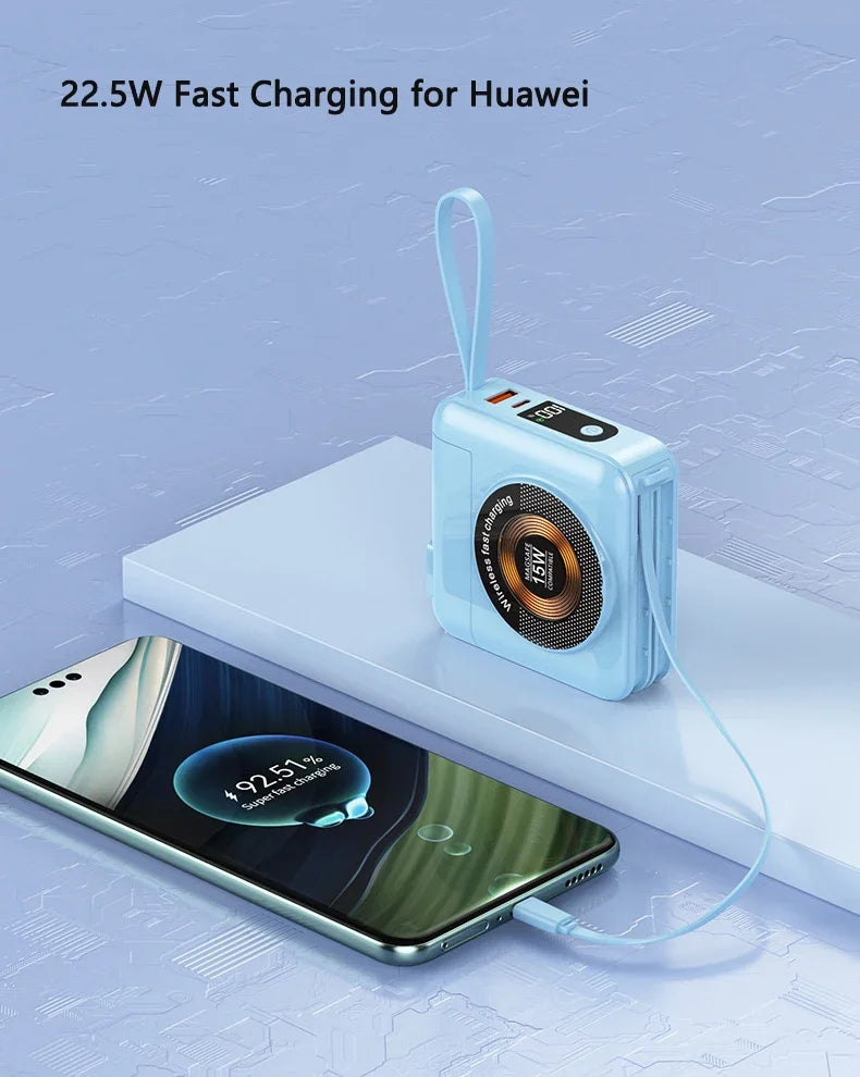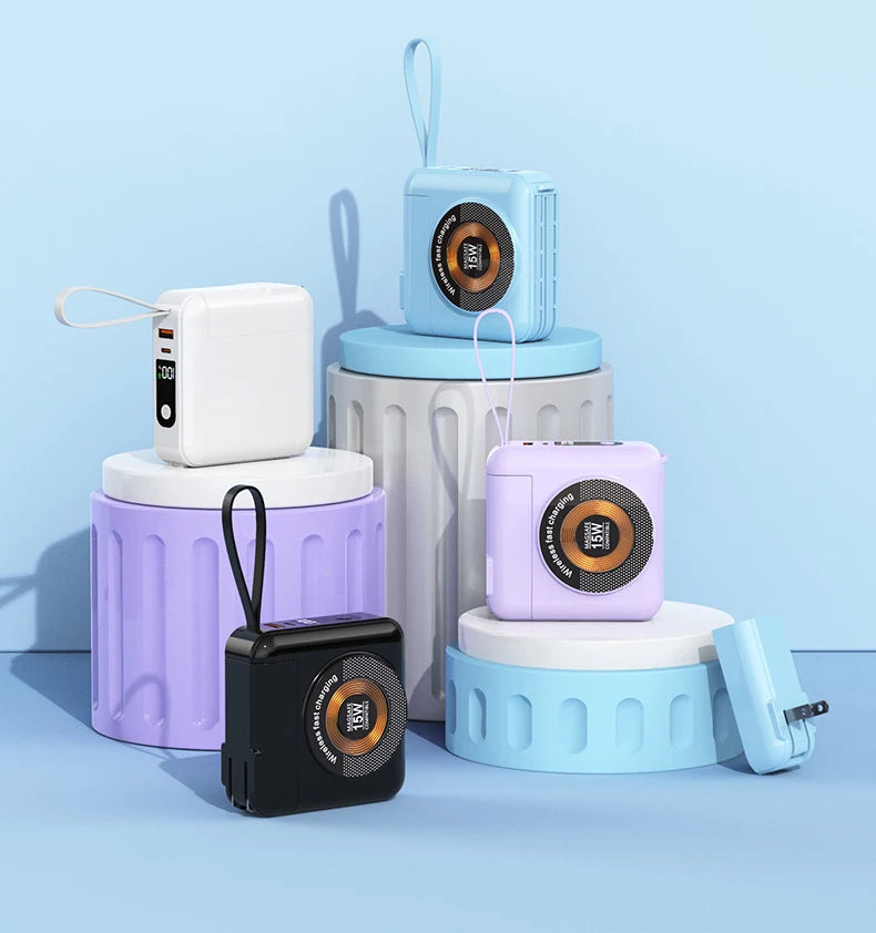 Fonction 5 en 1 --- Banque d'alimentation mobile + Chargement sans fil + Chargement magnétique sans fil + Câble intégré + Chargeur mural