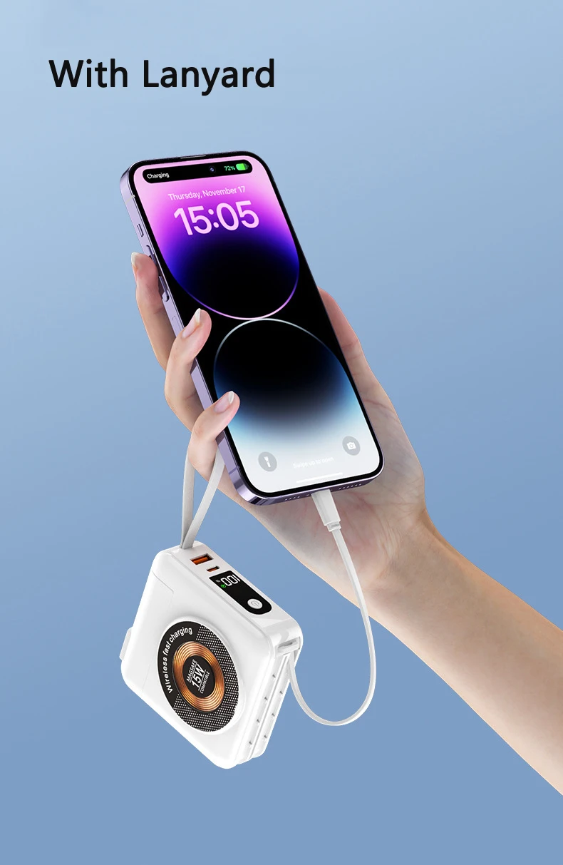 Caractéristiques: Wireless charge,Câbles intégrés,Affichage numérique,Chargeur & batterie en 1,Avec lampe LED,Avec prise